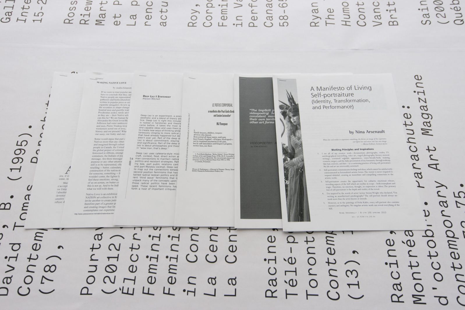 With Sylvette Babin, Sarah Chouinard-Poirier, Paul Couillard, Carola Dertnig, Anique Jordan, Adam Kinner, Yen-Chao Lin, Tanya Lukin Linklater, Danielle St-Amour.