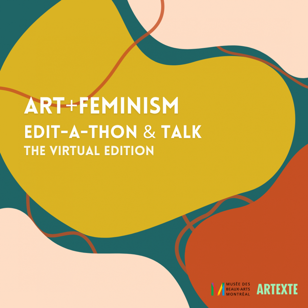 As part of the Art+Feminism campaign, Artexte and the Montreal Museum of Fine Arts are teaming up and inviting you to highlight the work of artists and authors from groups that are underrepresented in Wikipedia, including women, indigenous people, people of colour, and people from the LGBTQ2S+ community, with a Wikipedia Art+Feminism edit-a-thon.