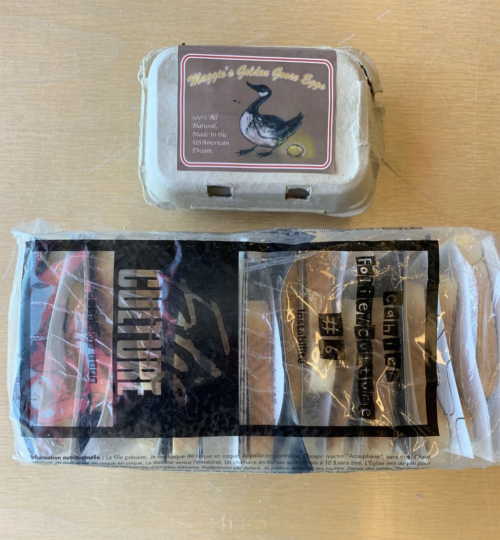 Our first week exploring the Artexte archives led to some exciting and intriguing discoveries… Both books are from the Mobilivre-Bookmobile collection, a mobile exhibition of independent publishing traveling across North America from 2000 to 2005. The Bread Book is part of the Cahier Folio Culture series, and the Eggs Book is created by Joshua Short.