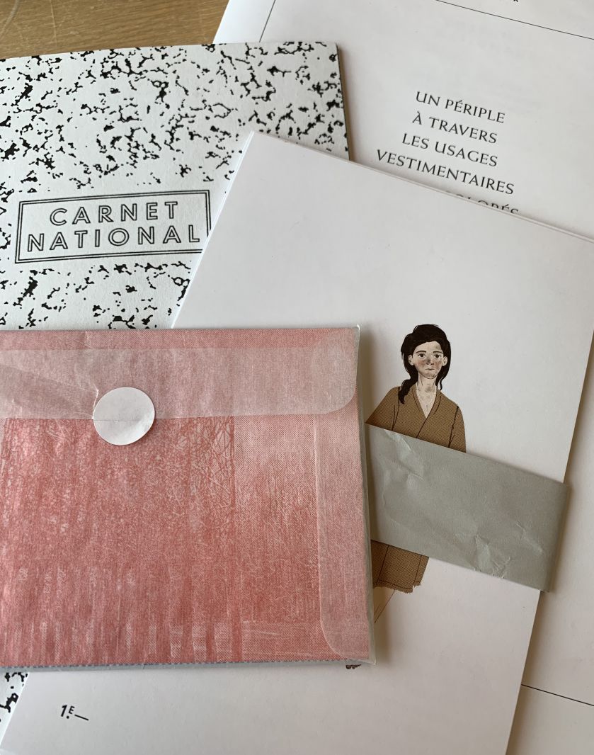 Exploring formats, this work by Daniel Canty and Stéphane Poirier refracts as a set of postcards (wrapped in wax paper), costume designs (ribbonned), risograph-printed photographs (stapled), and a narrative (we still need to read!).