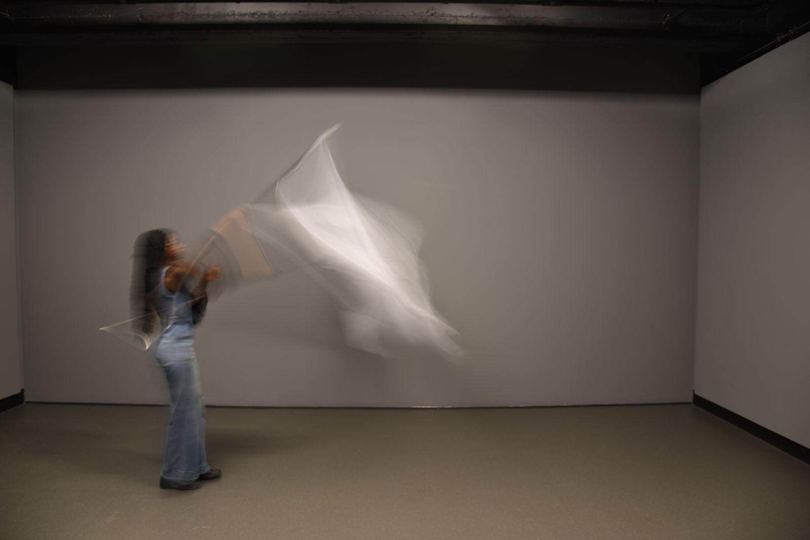 Held tightly in my hands – at once a caress and a sign of a heavy burden – the flag and the work itself asks: to what extent is language itself performance? And performance of what?