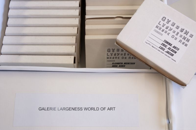 | Galerie Largeness World of Art | A project initiated by Luis Jacob from 1996 to 2002, made up of 30 issues which include original artworks by over 90 artists. The project also includes sound recordings, multiple artists and mail art. |