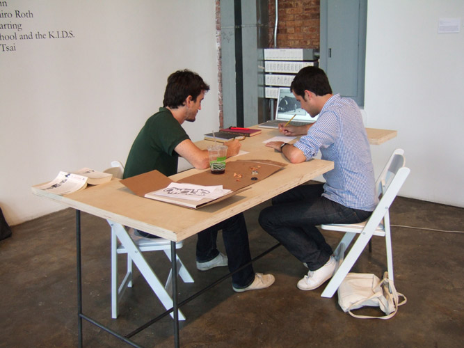 Gareth Long and Derek Sullivan are continuing their on-going project to illustrate and translate Flaubert’s Dictionary of Received Ideas this Fall in Montreal. Seated at an iteration of Long’sBouvard and Pécuchet’s Invented Desk For Copying, a series of desk-sculptures pulled from the unfinished pages of Gustave Flaubert’s incomplete last novel, the two artists intend eventually to illustrate every entry in Flaubert’s posthumously published satirical dictionary – a text that contains 950 biting and surprisingly contemporary entries. They have compiled their collected illustrations to date in a new version of their bookwork, The Illustrated Dictionary of Received Ideas. An edition containing the illustrations completed to date will be published by Artexte and will be launched later this Fall.